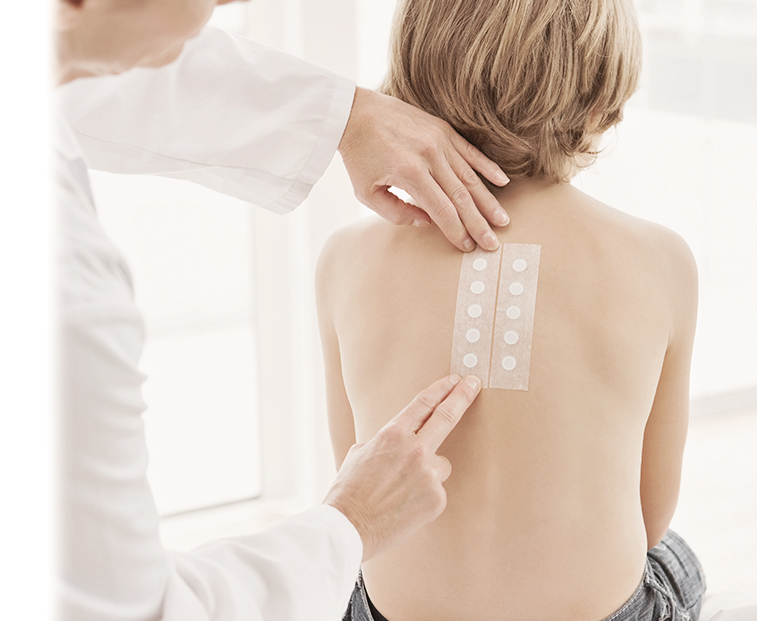 The patch test consists of 70 of the most common chemicals/products. You may also bring a few of your own products to test. The patches are placed across your upper and middle back and left in place for 48 hours. Patch test results are read at 48 hours and 72 hours. At the 72-hour patch test reading, you will meet with your allergist to review the test results and create a specialized treatment plan.